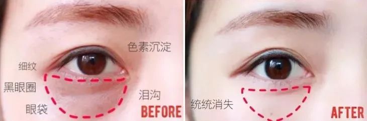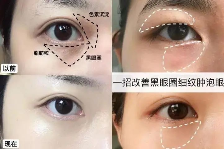 因为每个人的眼周问题都不一样,有的可能是浮肿显老的眼袋,也有可能是熊猫眼或者眼纹~
