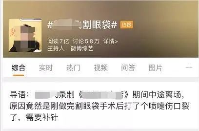 前段时间,微博爆了一个热搜话题,某明星做了割眼袋手术,结果因为打喷嚏伤口开裂,录制节目中途离场去补针!