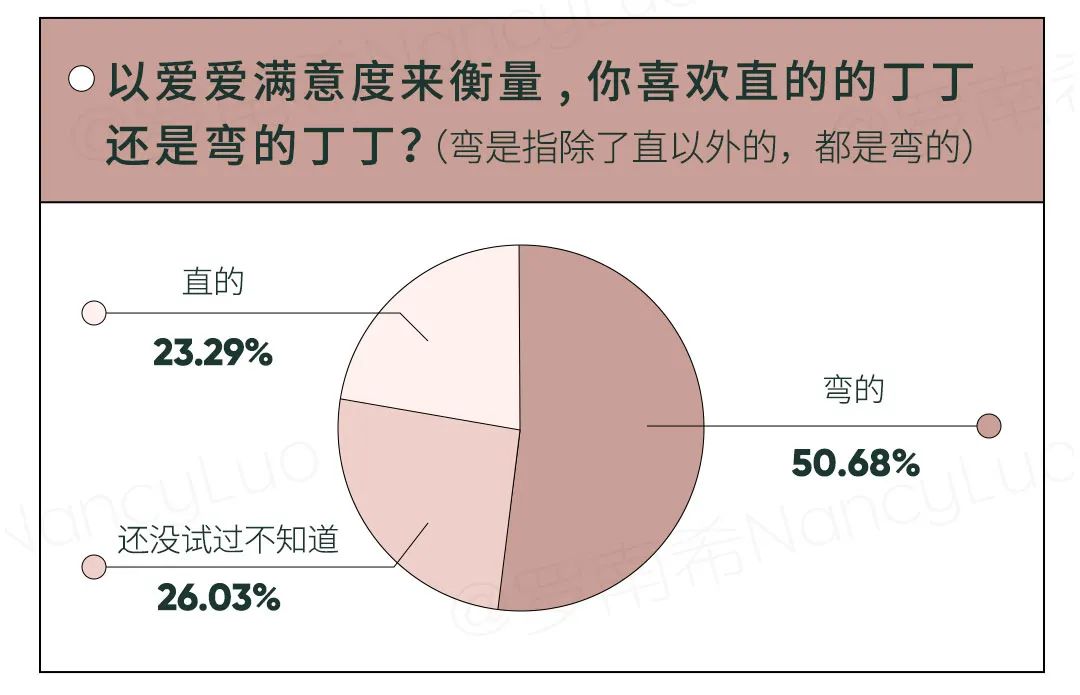 在我们一份73位女性参与的《丁丁直VS弯》数据大调查中,弯丁丁以压倒性优势占据了半壁江山。