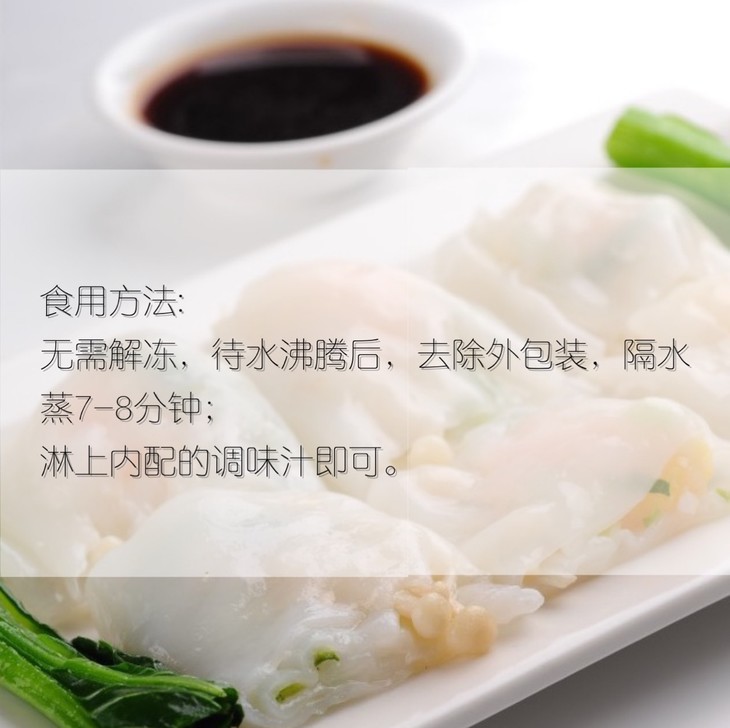 无需解冻,待水沸腾后,拆去外包装隔水蒸7-8分钟,淋上调味汁即可食用