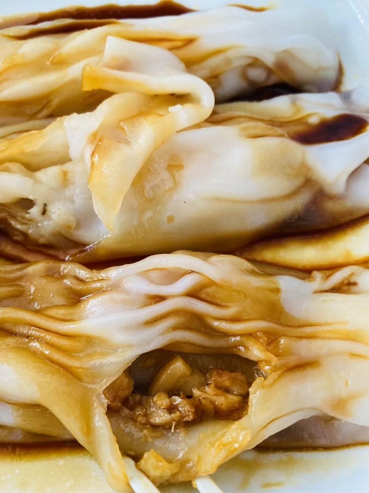 地道的肠粉是吃肠粉皮儿,馅料只放少量且较为单一,味道清淡但是鲜味突出;