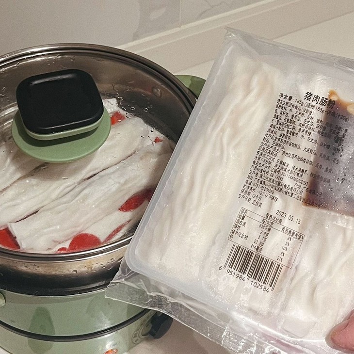 从而让肠粉皮的口感细嫩幼滑的不像冷冻食品,可以媲美很多茶餐厅的现场出品了