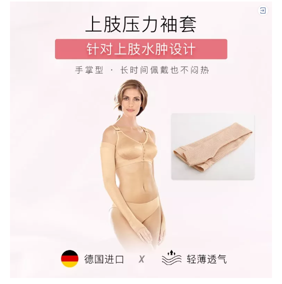 小初温馨提示:尤其是腋窝淋巴清扫术后的姐妹,为预防淋巴水肿的发生,要注意避免患侧上肢作高强度的运动、搬运重物等活动。例如:坐飞机、爬山、大扫除、提重物、做手部运动时(跳舞、跳广播操)都建议穿戴着压力袖套。