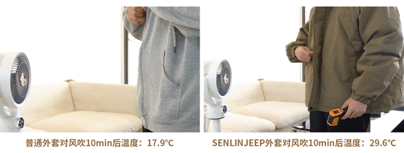 替大家试过了:搬出来了风力超猛的电风扇狂吹胸前,普通外套早就漏风到扛不住了,它还能持续暖和。