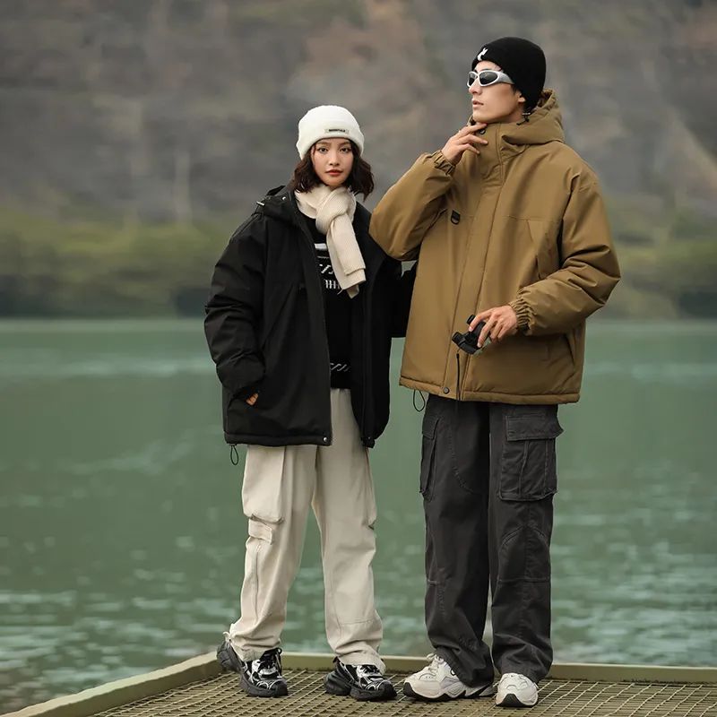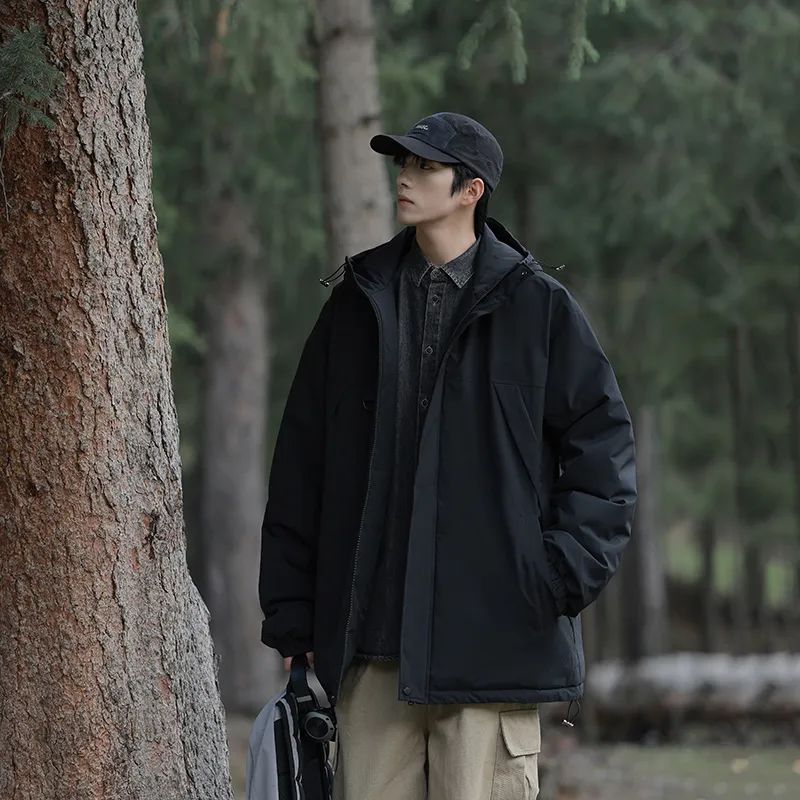 SENLINJEEPSD这款版型干净利落不拖沓,有点偏向于户外冲锋衣的样式,在棉服里比较少见,穿的人有一种很清爽的利落感。