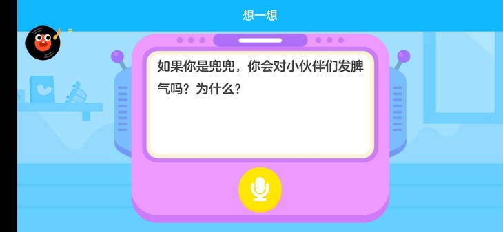 ▼引导思考环节,孩子在通过兜兜了解随意发脾气不对之后,换位到自己,”如果自己是兜兜,自己会怎么做” 孩子自然就会知道不应该发脾气,在之后遇到类似的情况是自然也就不会随意发脾气了~