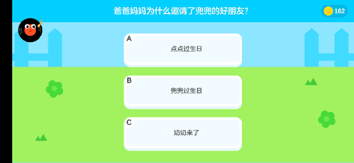 ▼在互动闯关环节,让孩子再次回忆故事的来龙去脉,要做一个讲道理、不随意发脾气的人。