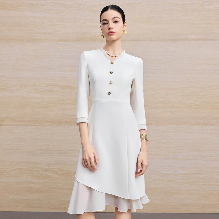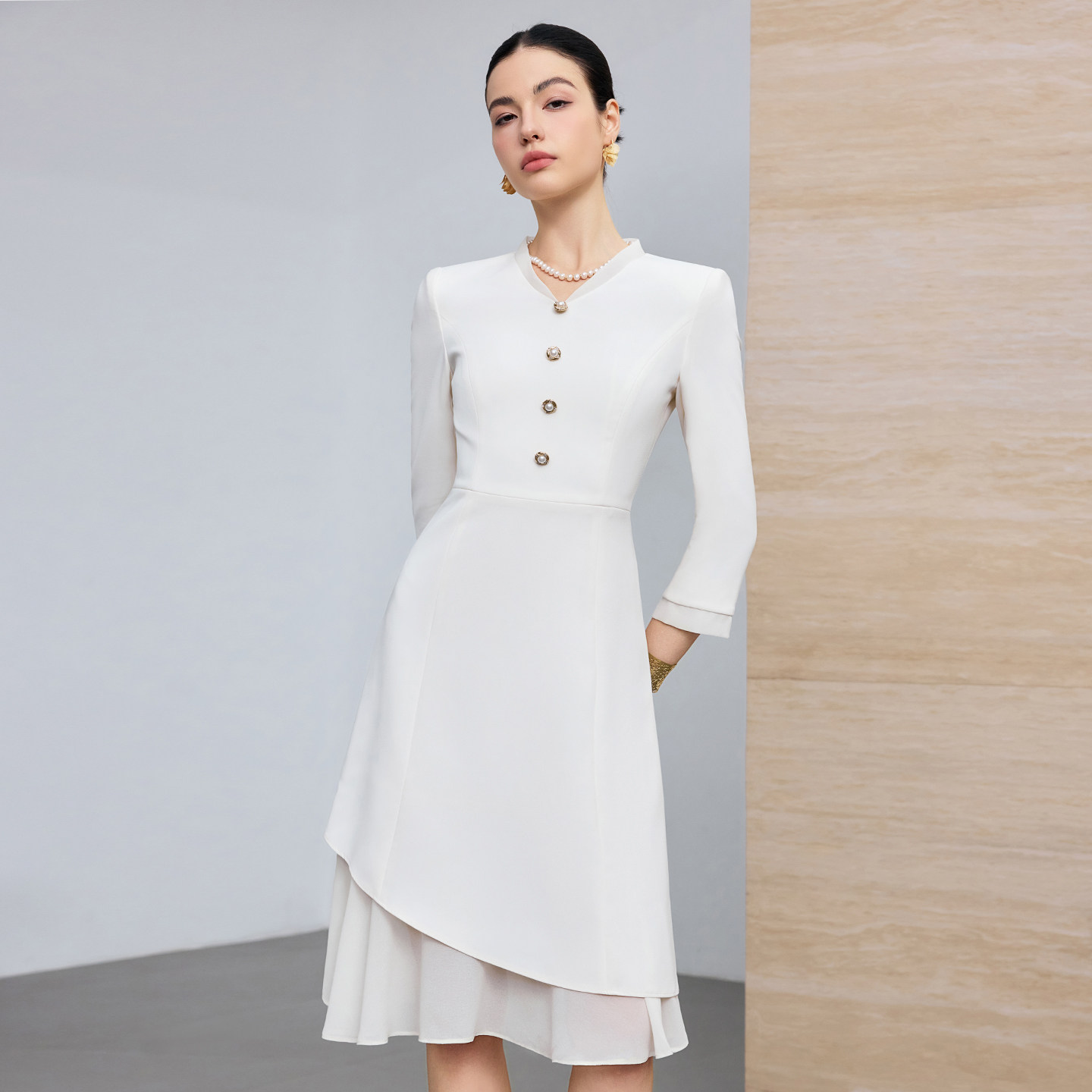 在通勤衣橱的经典叙事里,这件白色长袖西装裙,是优雅与专业的完美注脚。