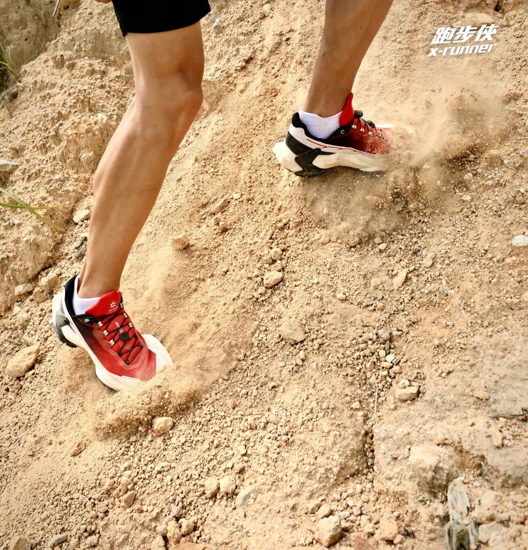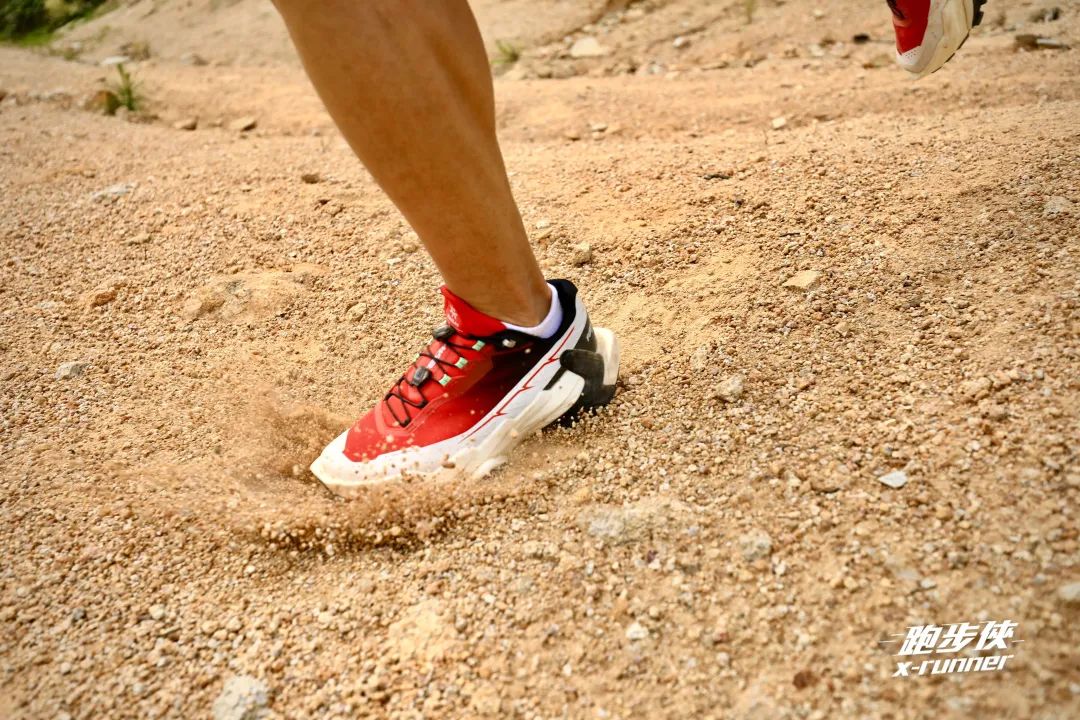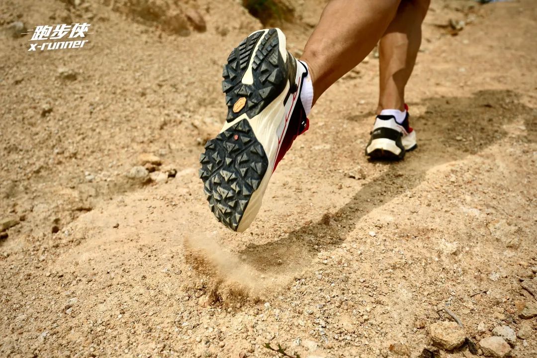 尤其是冲上45度的砂石坡面,大坡王的大底抓地防滑性出色,持续把腿部力量传送到脚掌部位,让每一次蹬地都高效稳定,非常经济性,完成冲顶不拖沓。