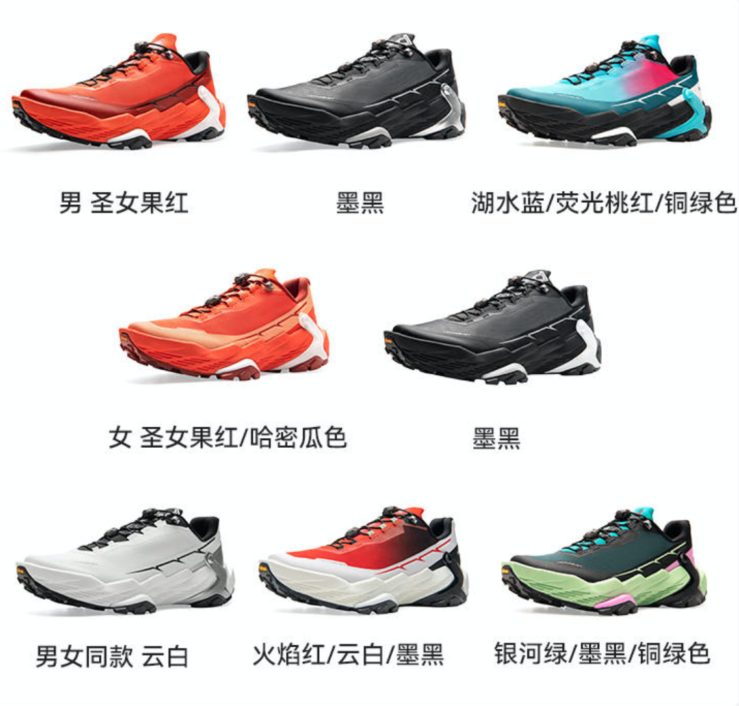 配色方面,除了跑步侠同款「火焰红」,还有「圣女果」「霓虹」等多元配色,给越野跑者带来了多样个性选择。