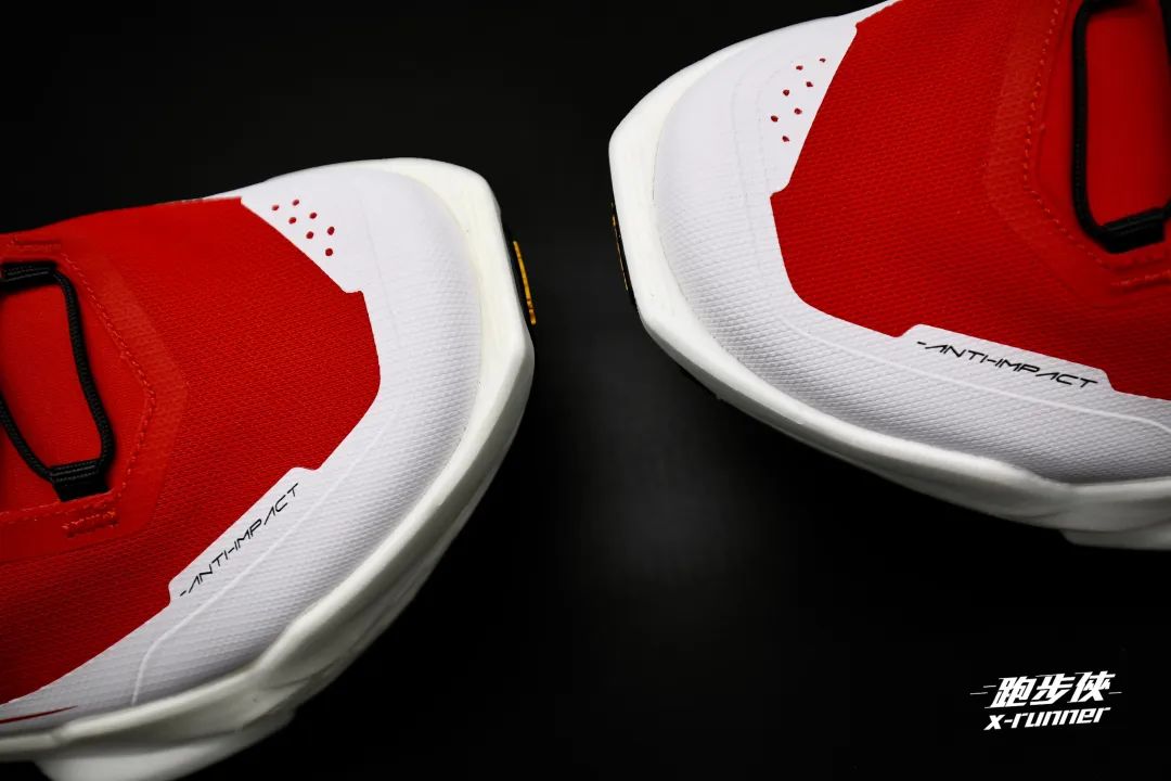 「烈焰款」配色映入眼帘炫酷而夺目,外观棱角分明,白色中底纹路折线犹如连绵的山峰衔接到鞋头越野感十足,鞋面红黑渐变更加经典耐看。