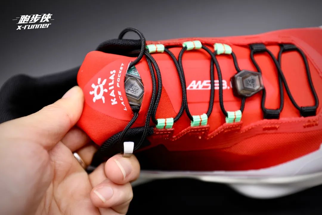 同时,鞋款还设计了与防砂套连接的挂点,防止砂石进入鞋内对脚造成损伤、透气、弹力、运动无阻碍。