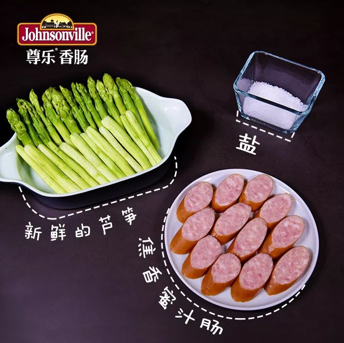 新鲜芦笋 / 尊乐焦香蜜汁肠 / 盐