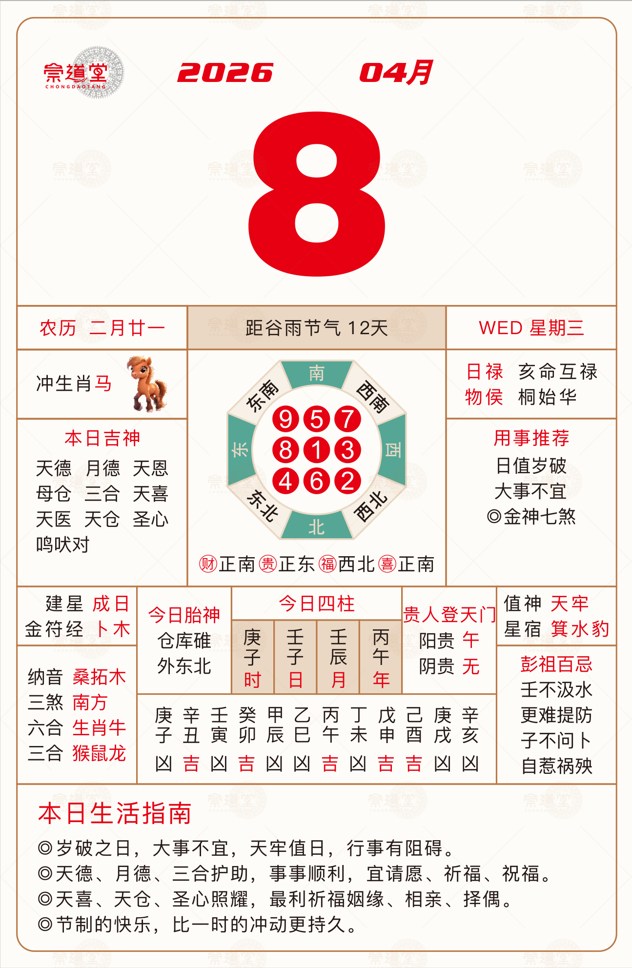 2026年4月13日 农历二月廿六 丁巳日 冲猪
