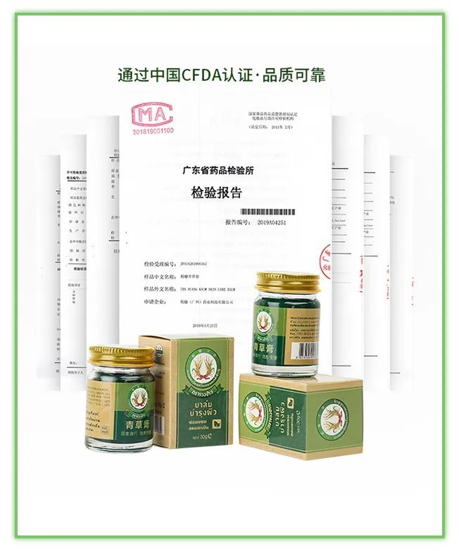 顺便一提,它还有别的青草膏没有的中国CFDA认证~品质超放心。