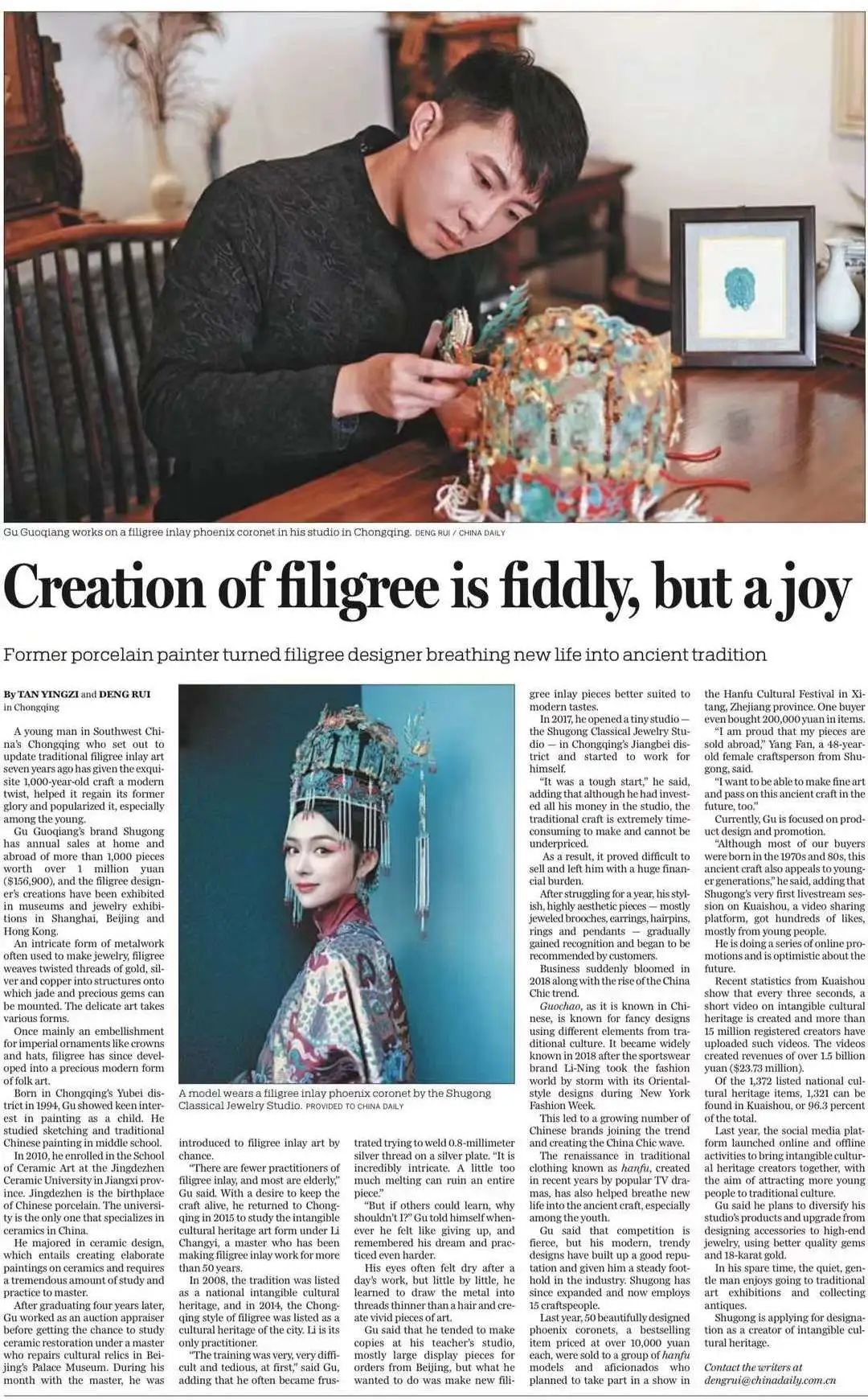 辜国强的花丝镶嵌作品