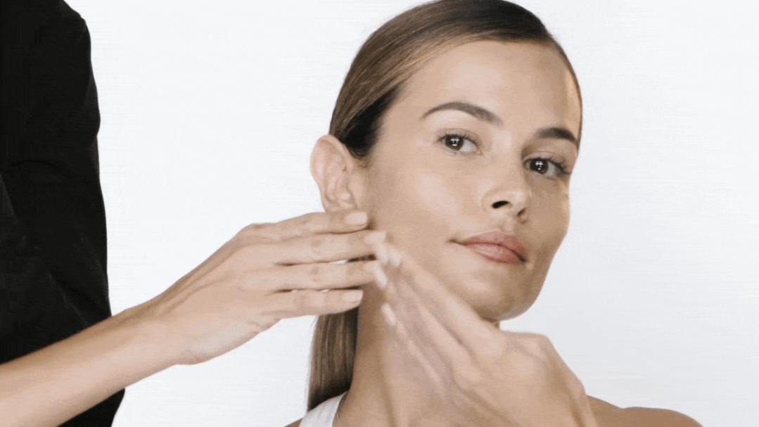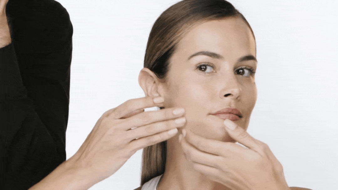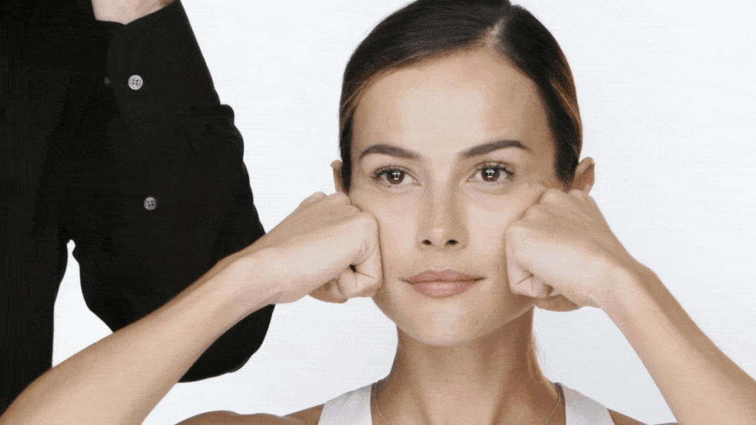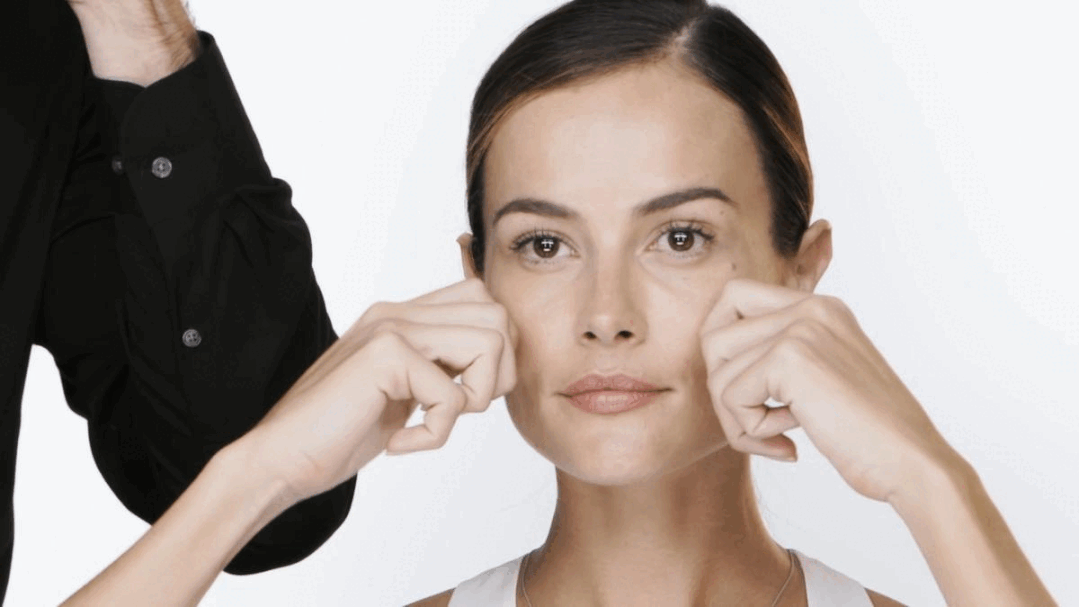 用拳头创造出的平面,按摩轻提颧骨下的肌肤,
