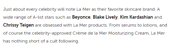 LA MER 海蓝之谜 一直掌握非一般的话语权。