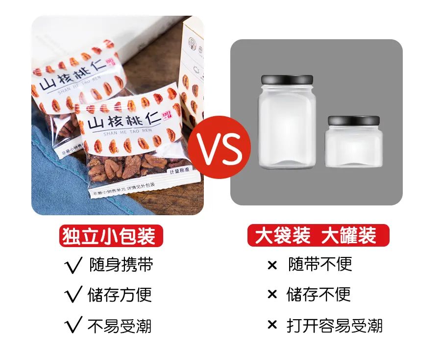改成小袋装就方便了:不易受潮,不管上班、旅行都能在包里装2袋。而且一小袋一小袋,刚好适合加餐的量。