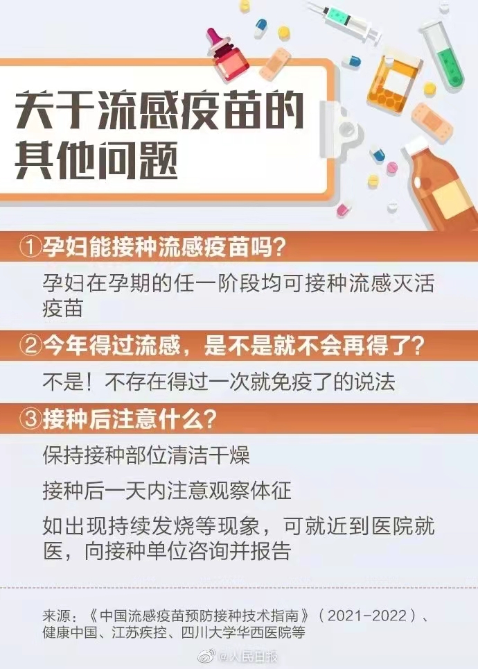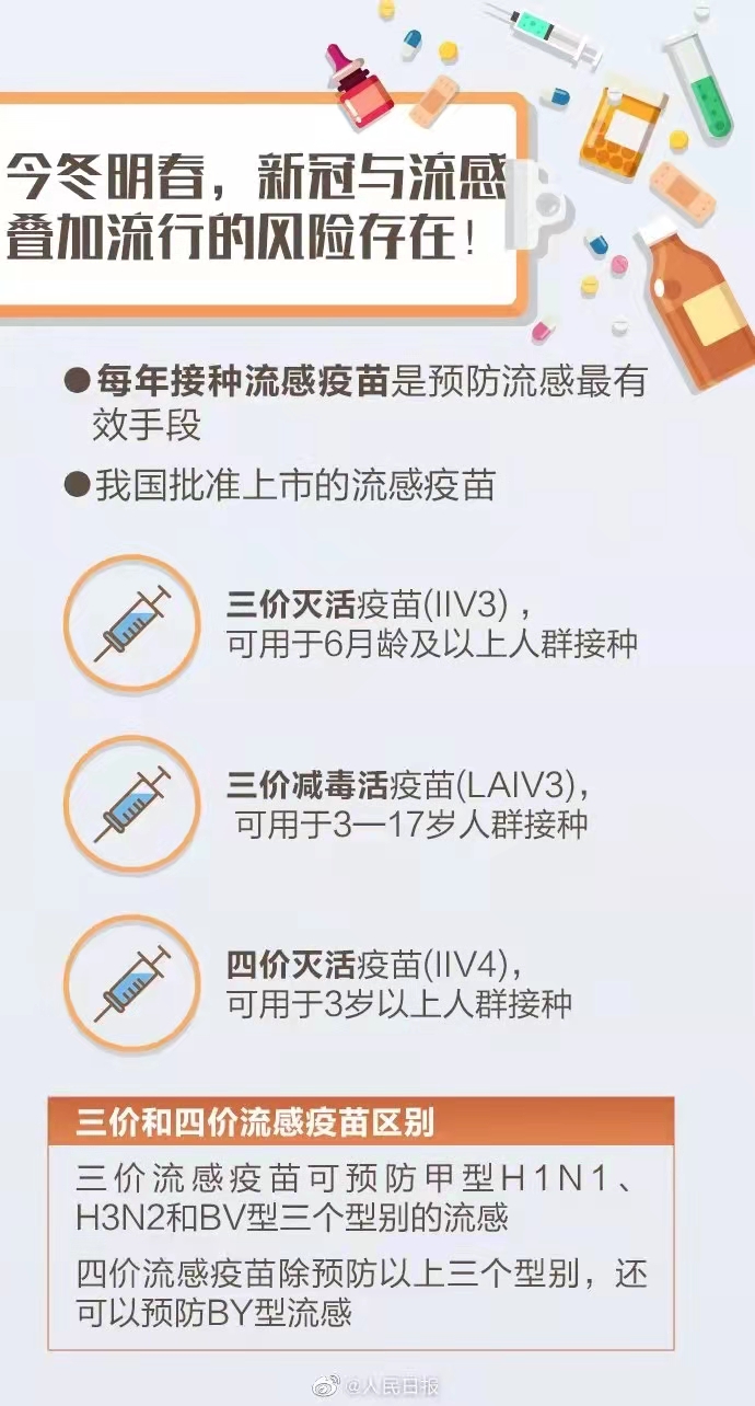 日前,国家卫生健康委印发通知,要求做好流行季流感防控工作。据介绍,今冬明春新冠与流感存在叠加流行风险。每年接种流感疫苗是预防流感最有效手段,且流感疫苗最好10月底前完成接种。