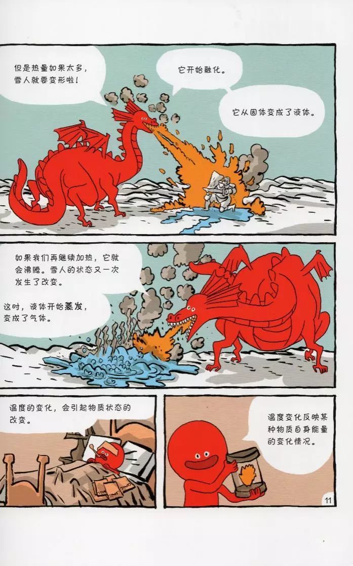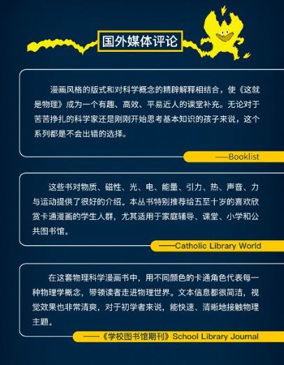 从新高考“3+3”模式在全国推行开始,没想到,物理因为难学,遭遇了前所未有的冷落。以杭州一所普通高中为例,高考改革前,全校有2/3的学生必修物理;高考改革后,选考物理的人数降到了不足50%。紧接着新高三学生报考物理的人数下降到了33%,新高二更少,仅60人,占年级总人数的10%。孩子的选择应该尊重,但是这些考生必须知道,很多211、985名校的热门专业都是看物理成绩的,一旦放弃物理,可能就会与名校擦肩而过。对孩子以后求学、就业的影响真的蛮大的。很多人提起物理就头疼,小时候没怎么接触,到了初高中就是各种刷题、死记硬背,“物理难”就成了常态。为了让孩子从小建立学习的信心,有一定的科学素养,教育部也开始着手这件事情,正式规定:小学课程从一年级开始学科学。科学今后也变得跟语文、数学一样重要。科学素养需要从小培养,学堂一直坚信:会阅读的孩子什么都难不倒难咱们。这不,最近,大家又开启寻书之旅……刚好央视《第一时间栏目》推荐的这套书引起了大家的注意:书名就叫《这就是物理》,就是专门写给5-12岁孩子的物理科学启蒙书。这套书在美国太受欢迎了,学校、机构、家庭都纷纷给孩子购买,它不仅入选美国学校图书馆期刊“ZUI佳参考书”,也成为美国科学启蒙的特别经典的图书。据说,基本上孩子一看就会停不下来,男孩女孩都很迷这套书。这引起了我们的好奇,赶紧第一时间,找出国内中学物理课本进行比对:不看不知道,一看吓一跳,虽然出版社说,涵盖85%中学必考知识点,我们感觉至少涵盖95%以上。说到物理知识,很多人想起物理就头疼,这是我们眼里的物理:说实话,看文字和插画就很颠覆传统物理启蒙书的套路。每处细节都做得很用心,戳下图看视频。讲《热》的时候,喷火怪的这个造型,简直太吸引孩子眼球了!这里讲加热的能量变化。能量变化是怎样引起物质变化的呢?