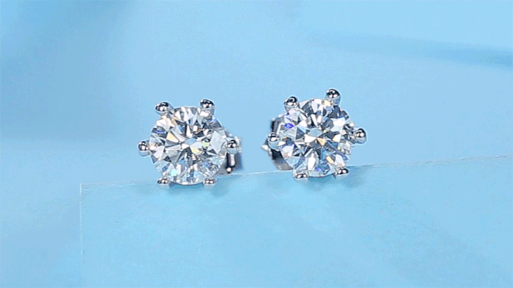 玖钻 六爪莫桑钻戒、耳钉