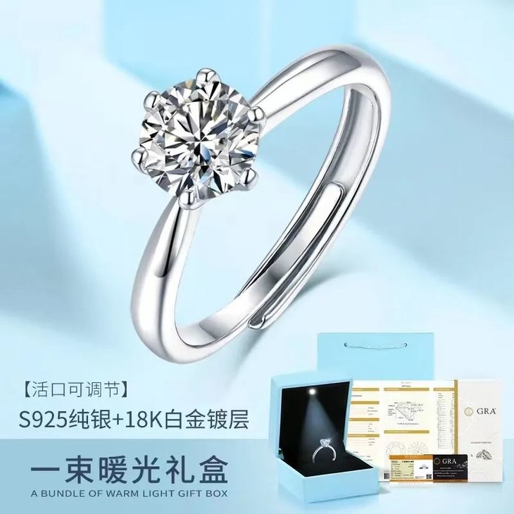 女孩子买来取悦自己、节日还没想好给女朋友送什么的,选这款莫桑石钻戒准没错。
