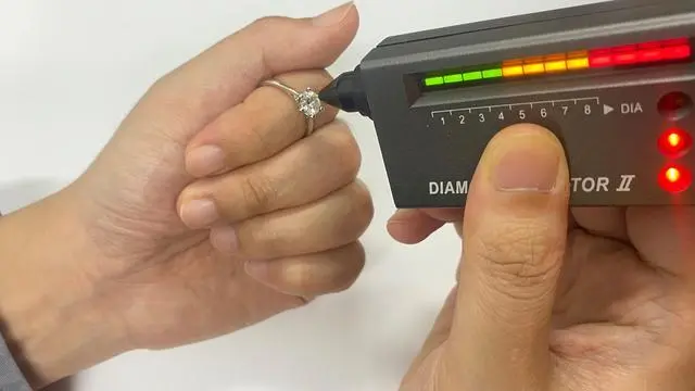 注:用测钻笔接触钻石,真钻石会亮起至少九个指示灯,并发出蜂鸣声,否则就是假钻石