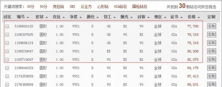 像市场上达到D色VV净度的1克拉钻石,市场报价都在8万左右!3EX切工那是想都别想。