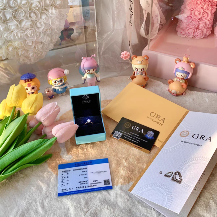 每一颗莫桑钻均通过了严格的珠宝鉴定,带有GRA证书、GRA黑卡以及国检证书,货真价实,保障品质。