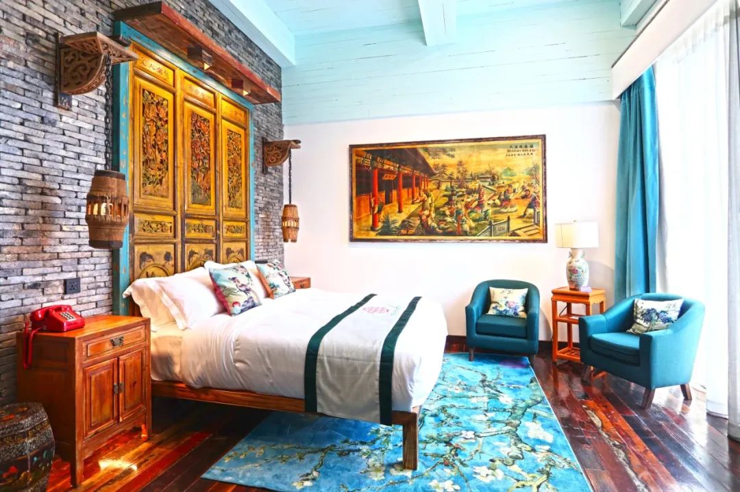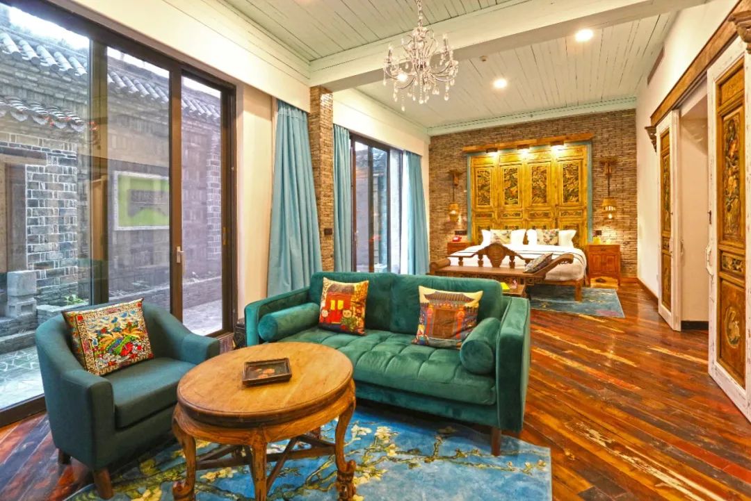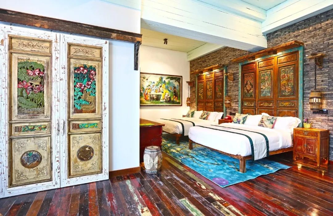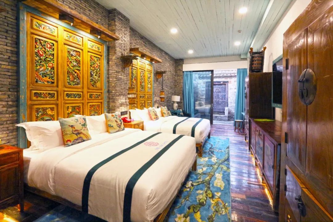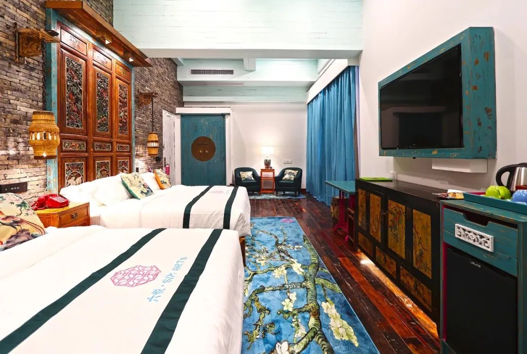 而六悦庄博物馆酒店,就坐落于规模宏大、令人惊叹的传统民俗艺术博物馆园区内。超过5000件传统艺术品分布陈列于酒店50间豪华客房、美轮美奂的花园以及让人叹为观止的公共空间内。