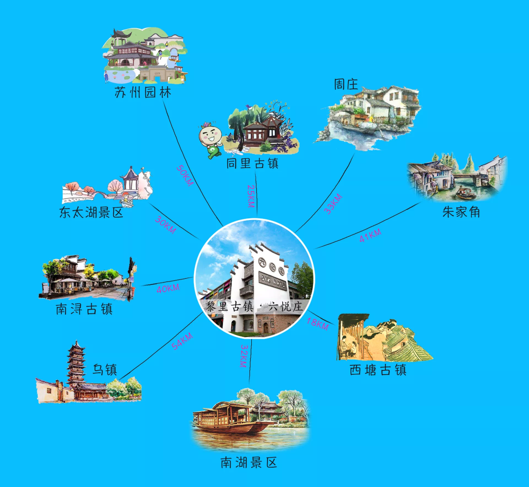 位于国家4A级景区黎里古镇的六悦庄博物馆酒店,距离黎里古镇游客中心步行仅500米,百步之遥便可到达黎里古镇老街。