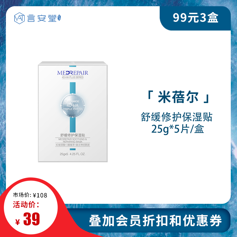 🌹米蓓尔舒缓修护保湿贴 25g*5片/盒 39元🌹