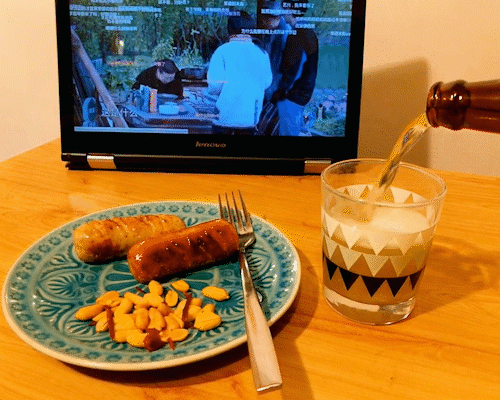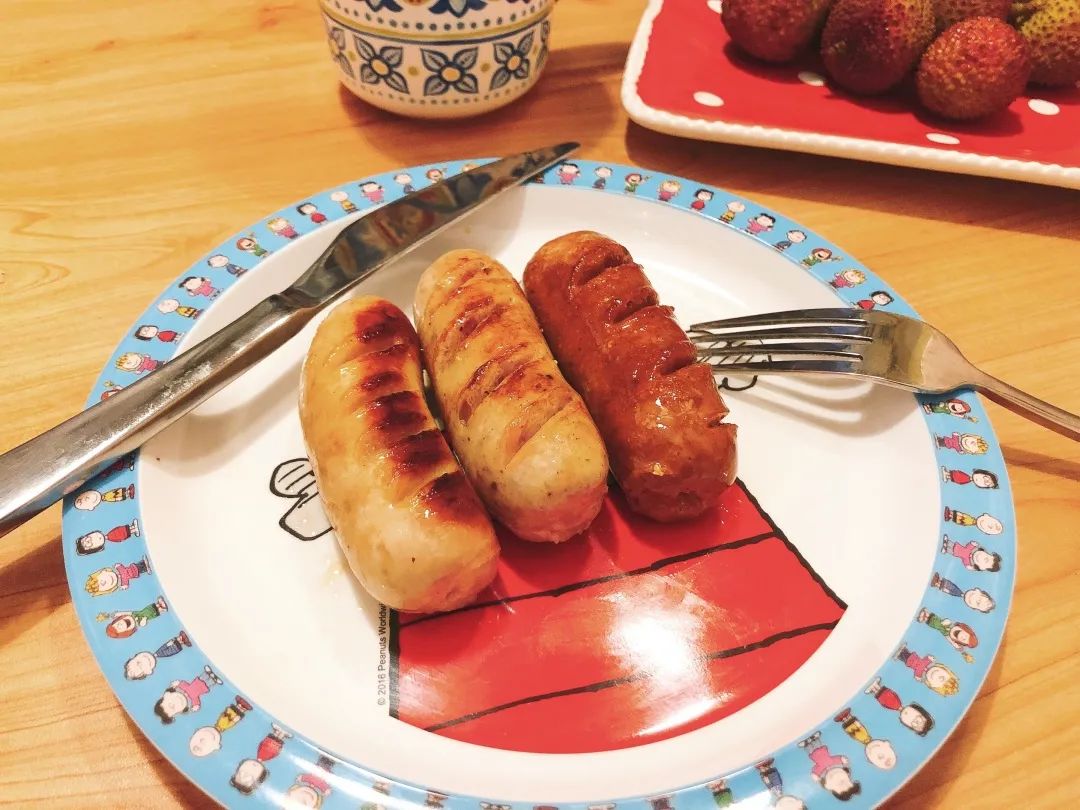 肉肠解冻+肠身刷一丢丢油+烤箱10-15分钟,开吃!