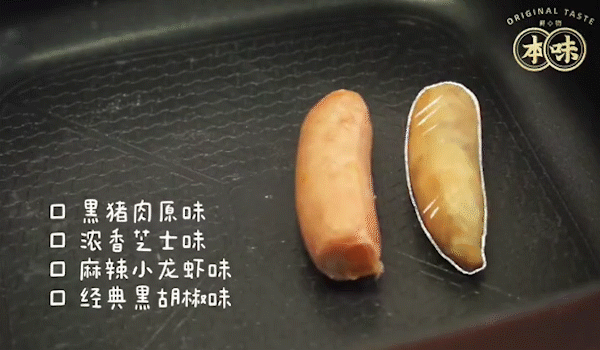 烤肠有4种口味:原味、黑椒、麻小、以及芝士。