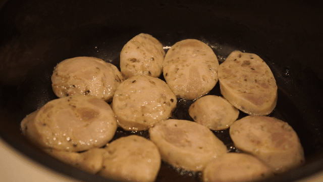 解冻后锅内加入少量食用油,油热后煎3-5分钟至金黄即可食用。
