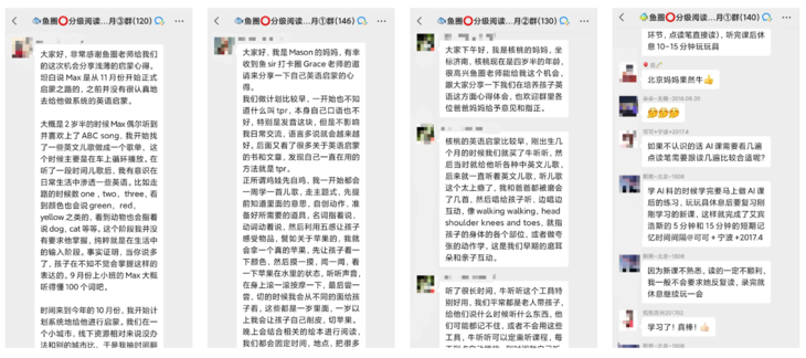 优秀家长经验分享相互帮助,群内阅读打卡氛围浓厚,相互激励共同进步。