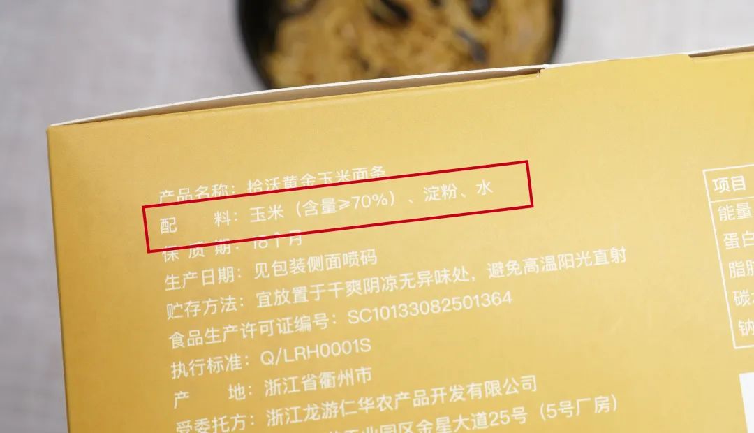 它玉米的含量高达70%以上,配料就只有玉米、淀粉和水!(加淀粉是为了让面条更劲道)