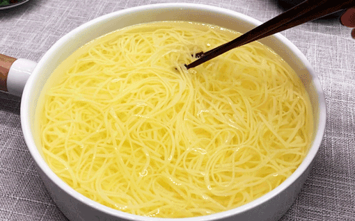 用它做出来的面条快煮速熟,金黄Q弹,要是犯懒热水泡上5分钟就能吃,做汤面、炒面、拌面口感爽滑又细腻。