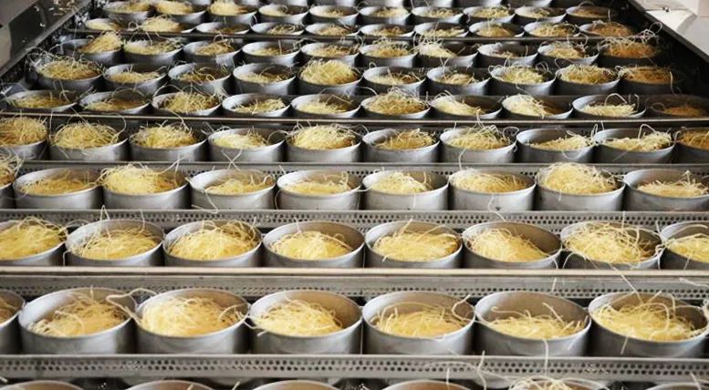 随后就进入了玉米面条的风干,为了不破坏它的口感,玉米面条采用的是低温烘干,3小时耗尽面条中的水分。