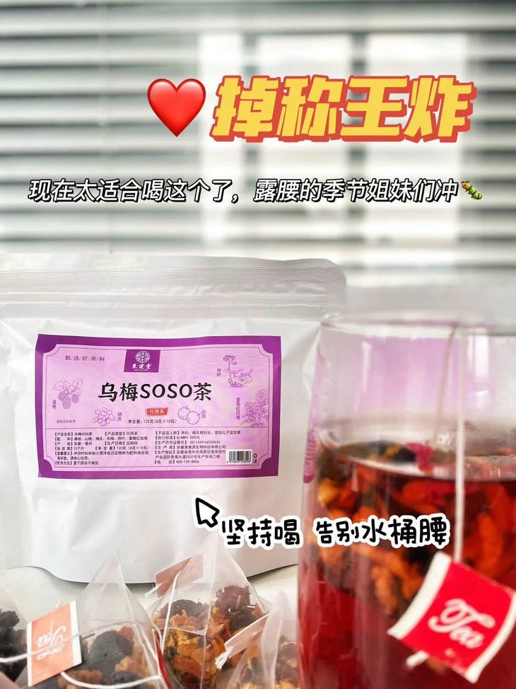 29.9到手4袋60包,山姆撤柜同款💥【东健堂乌梅soso茶】❗小“腰”精都在喝🥂GET暴瘦百斤的密!无湿又轻盈