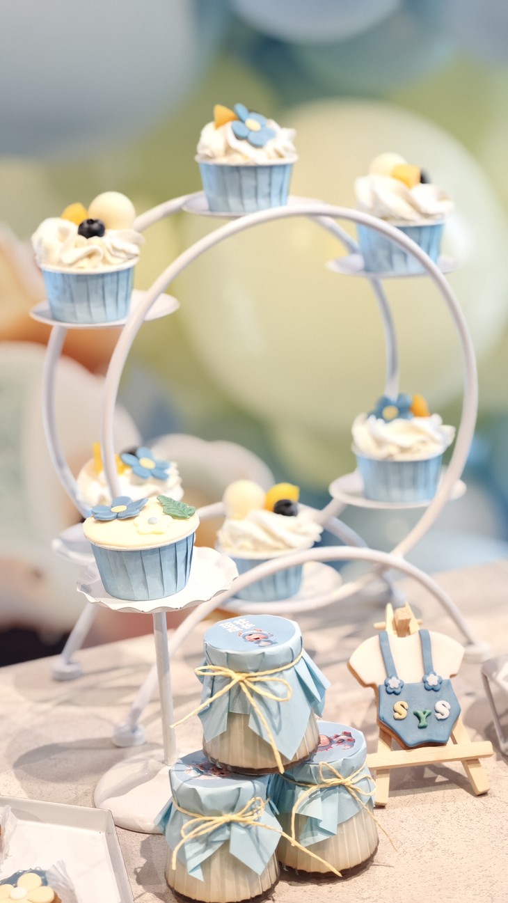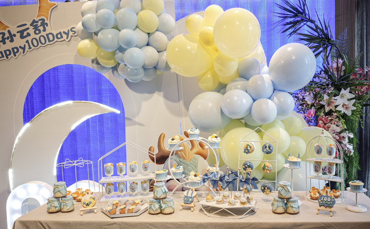 蓝色小龙人百日甜品台