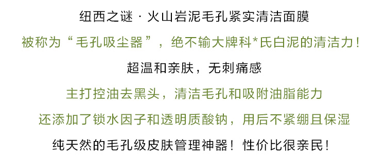 【油皮必备-纽西之谜火山泥膜】强力吸附、控油、深层清洁、紧致毛孔,男士可用