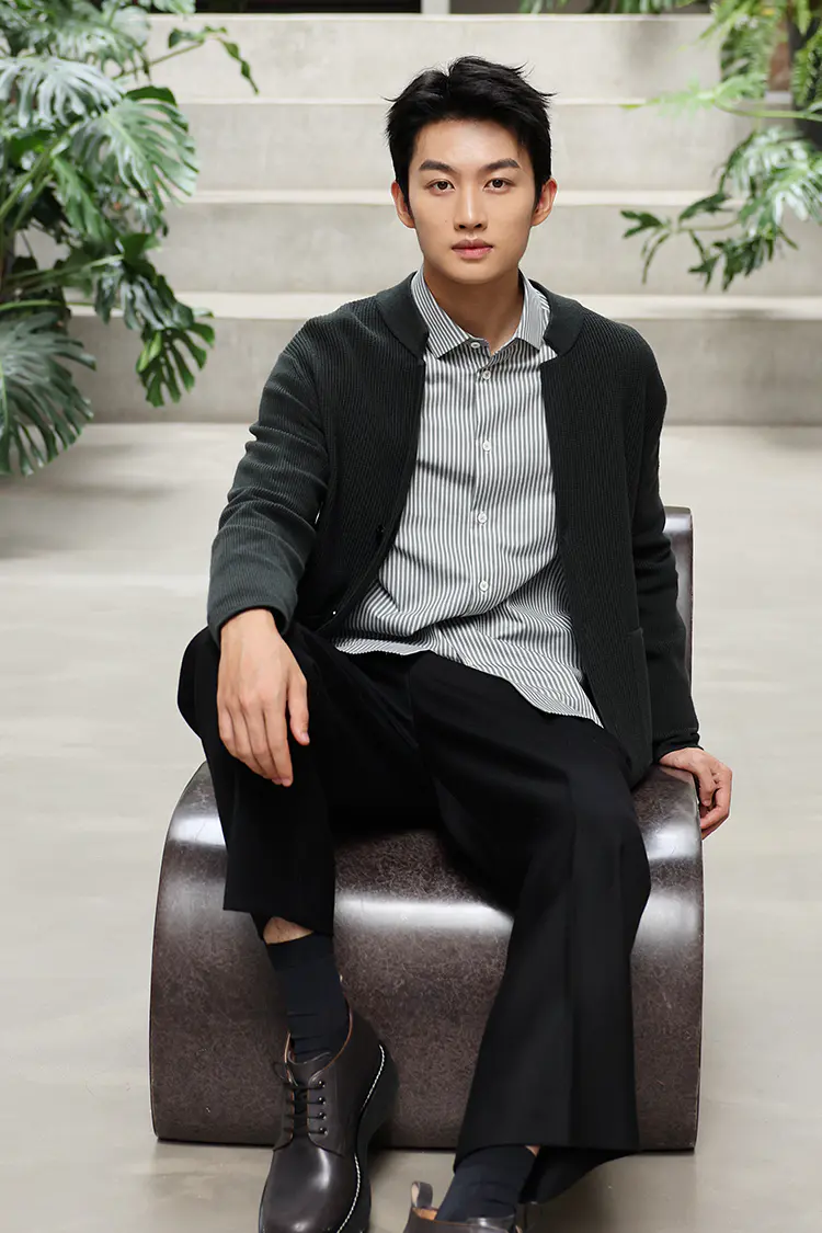 搭配复合提花针织衬衫