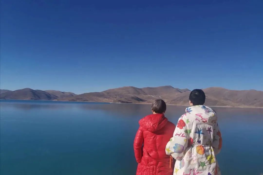2020年春节,文彩和妈妈在羊卓雍错