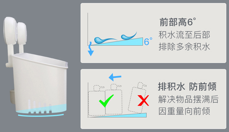 材质捏着结实,设计也贴心,下面能通风沥水,还做了小坡度,帮助排出积水和防止瓶瓶罐罐前倾。