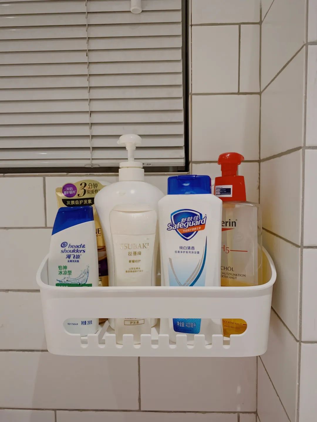 前面的小缺口能顺手挂挂浴球、橡皮筋和饰品等小物。