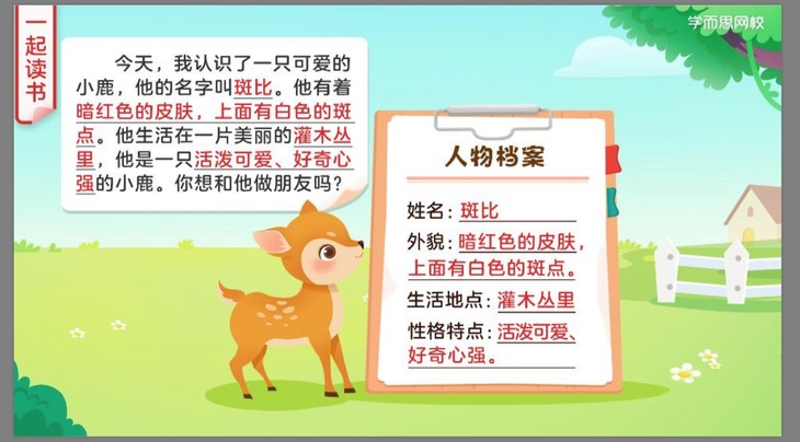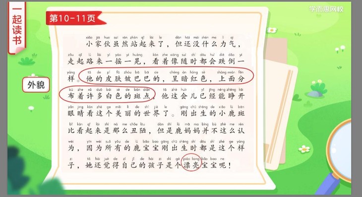 比如在L2的《小鹿斑比》课堂里,信息整合和圈画关键词,就是二年级孩子阅读理解必备方法。