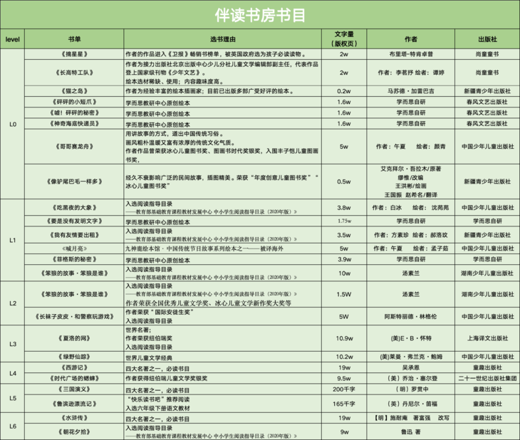 伴读书房精选每个级别2-8本书,是阅读领域的权威专家--中国阅读论坛三十人、北大中文系的名家亲自把关,选的都是非常优秀的译者且销量非常好的版本,书单的权威性咱们就不用担心了。