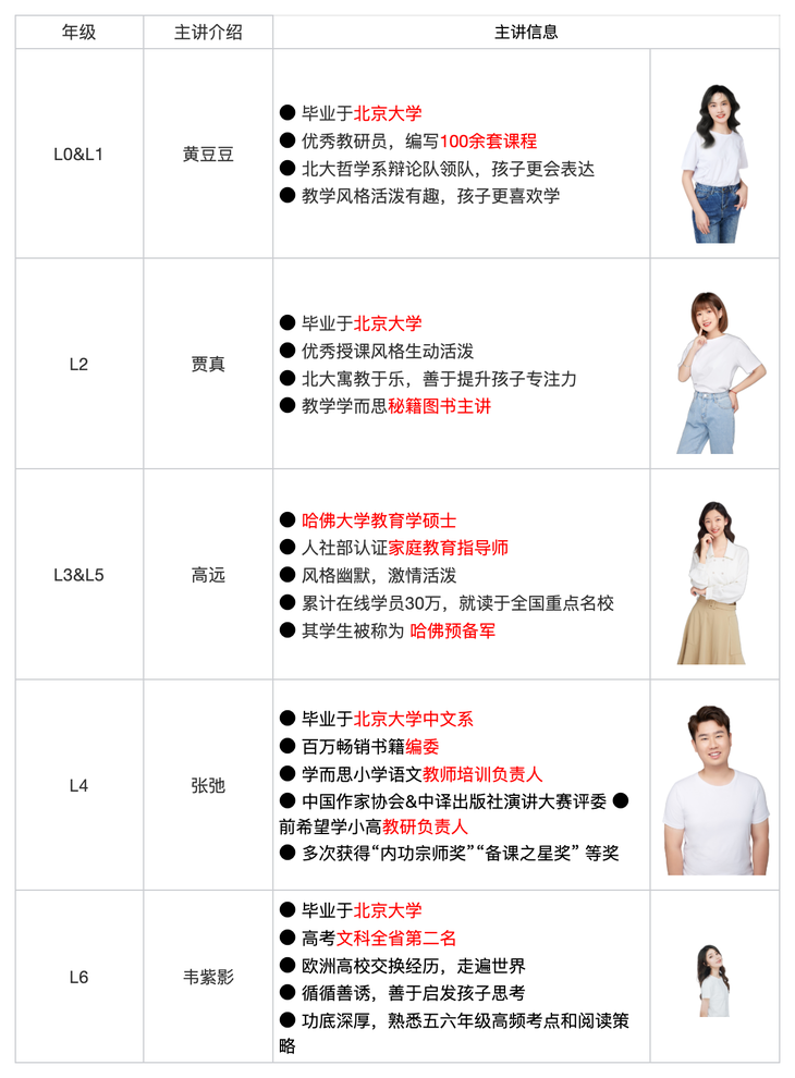 一个月一本书,有多个时间段可选,老师都是北大哈佛毕业的学而思明星讲师:
